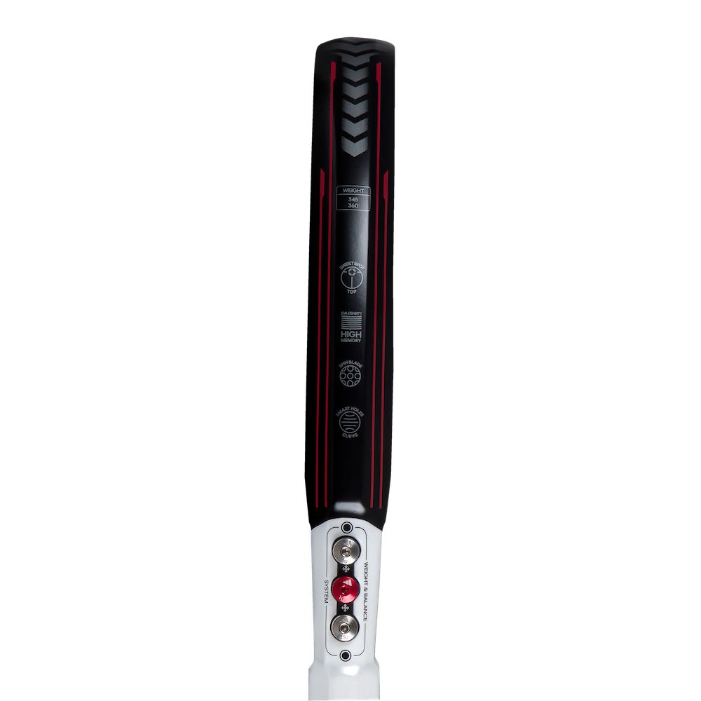 Ale Galán's racket surpasses all limits. Power, control, and technology reach unimaginable levels. The METALBONE HRD+ is designed for winning hands, those that decide the outcome of points, matches and tournaments. The racket is designed for the best padel players, such as Ale Galán. It incorporates the Weight & Balance System technology, which allows you to adjust the weights and balance to adapt it to a more control style of play or to reinforce its characteristics for a more attacking game. The Octagonal Structure located in the core, together with the other materials integrate within it, the EVA High Memory rubber and the Carbon Aluminized 2 to 1 fiber, make it an extremely rigid racket. The roughness of the Spin Blade Decal on the surface of the blade provides the best effects. The Diamond Oversize shape reinforces its status as an attacking racket. WEIGHT & BALANCE SYSTEM The capacity to gather different rackets in one single handle is possible thanks to this technology. The system of removable weights located in the neck allows the player to modify the balance and the total weight of the racket and adapt its. There are a total of six screws that can adapt the racket for an attack or control style, as desired by the player. OCTAGONAL STRUCTURE Maximum rigidity comes from the interior. This technology has a tubular structure with an octagonal section in the core of the racket that gives it great consistency. Its resistance to torsion is extremely high, so the most powerful shots are guaranteed. SPIN BLADE DECAL This technology covers the face of the racket with a rough surface with a high grip capacity. The friction with the ball is total, so the effects are carried out with astonishing ease.