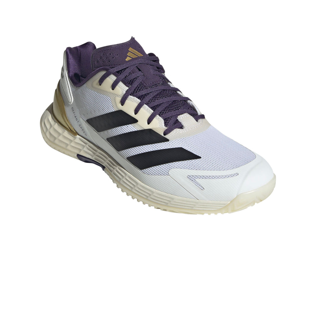 Dessa adidas tennisskor kombinerar alla viktiga element – ​​från riktad dämpning under foten till en slitstark yttersula – som hjälper dig att manövrera snabbt. En Lightstrike-mellansula absorberar stötar vid landningar samtidigt som du håller dig i kontakt med marken. Ovandeln i nätmaterial låter luften cirkulera runt foten och TPU vid hälen säkrar passformen. Dominera nätet eller spurta över baslinjen med lätthet.
